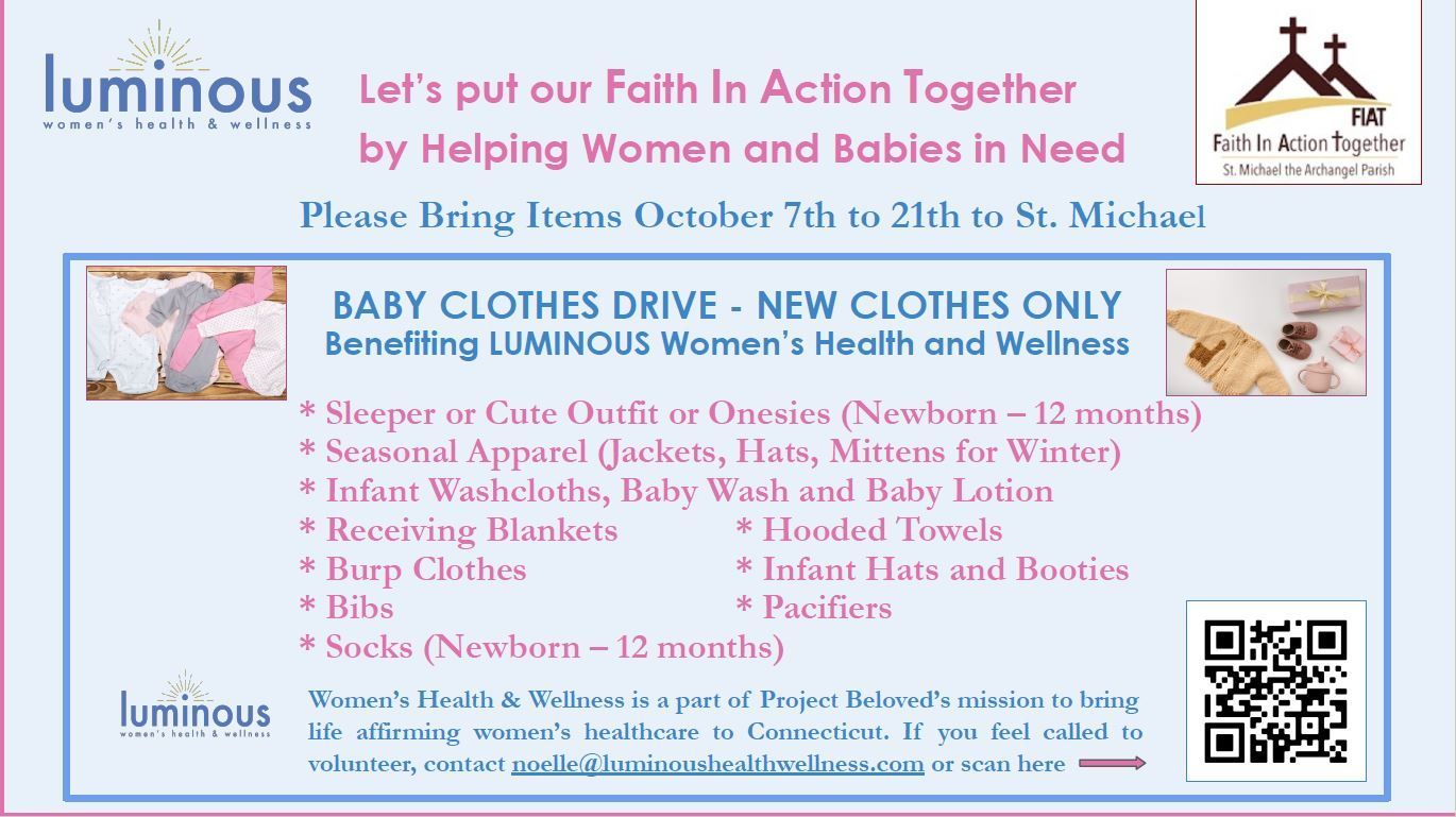 FIAT offers, organizes or supports a variety of outreach initiatives that allow our parish to serve those in need, especially in neighboring communities. Each initiative is unique and provides a different way to get involved. Some may invite us to donate goods or money, while others call on us to volunteer our time. There are also opportunities to connect personally with individuals where they are, offering support in their place of need. No matter the age, schedule, or ability, there's always a way to put our Faith In Action Together.
