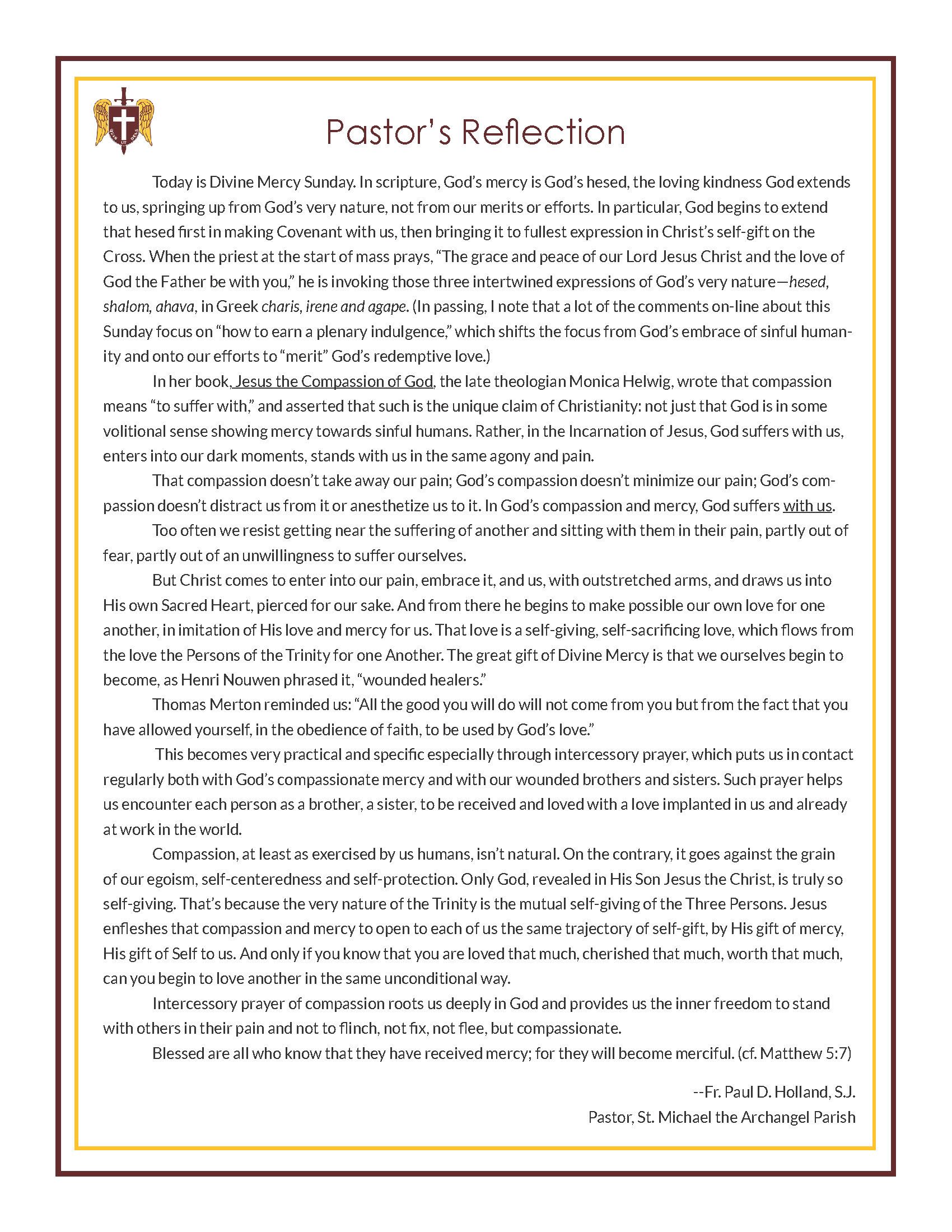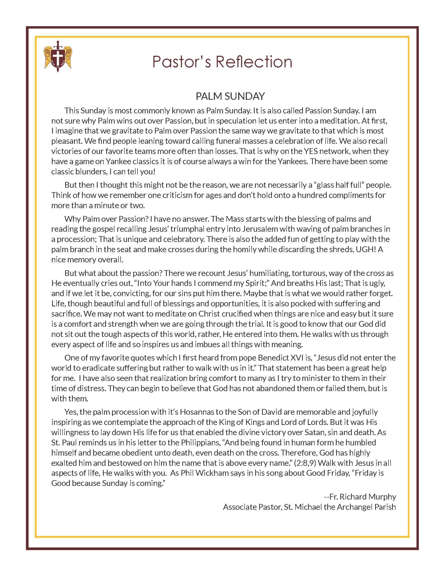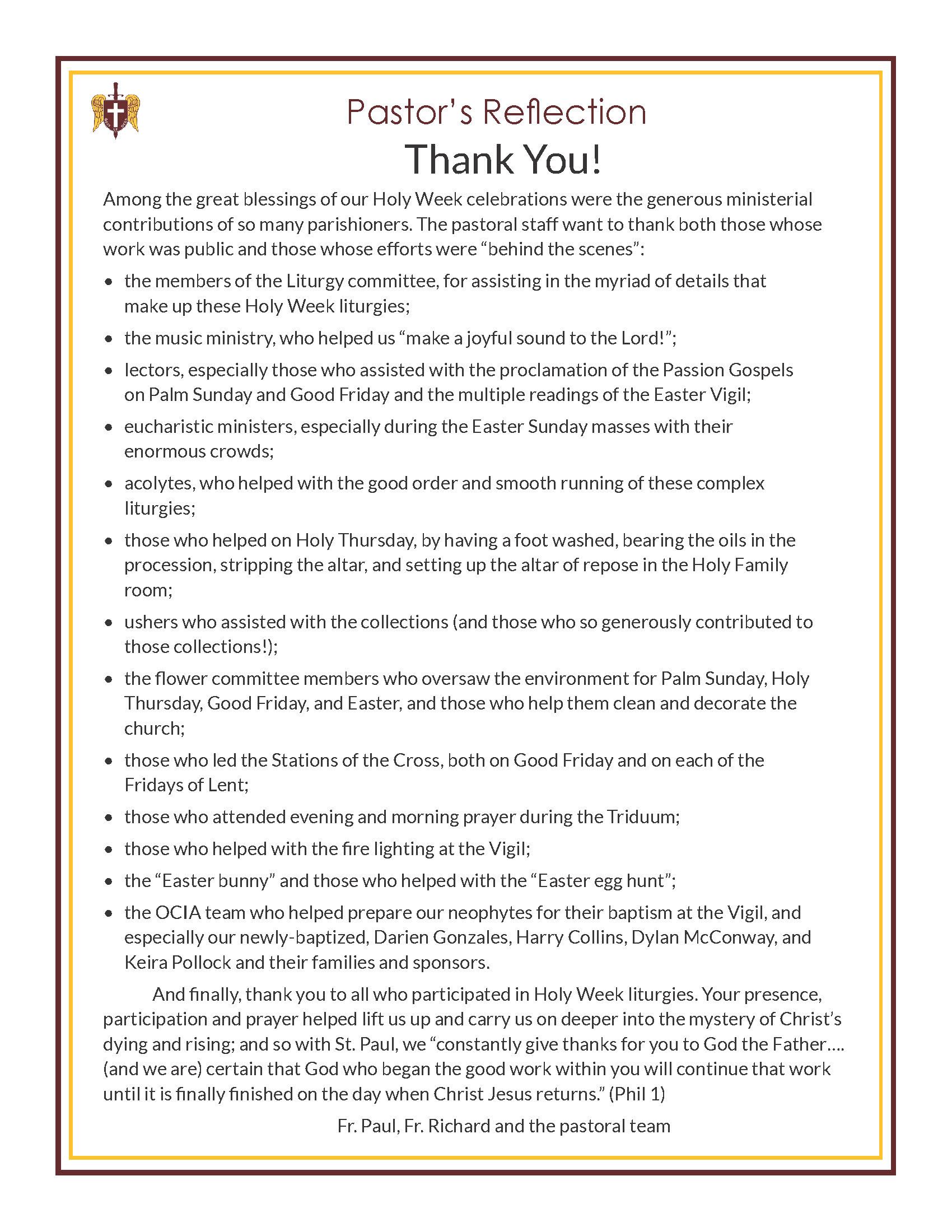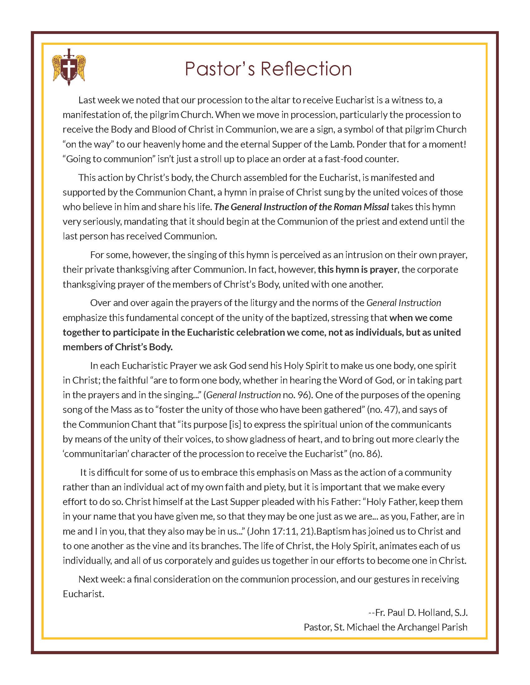 Reflections From Our Pastor