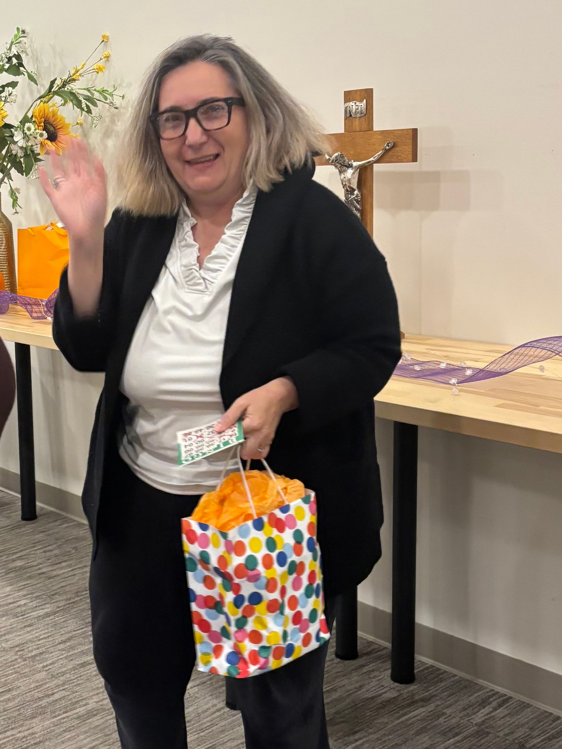 the charge. Organizing, recruiting volunteers, welcoming new and existing parishioners with a kind smile and a sincere voice. A dear friend to many. Roni will be missed but never forgotten.